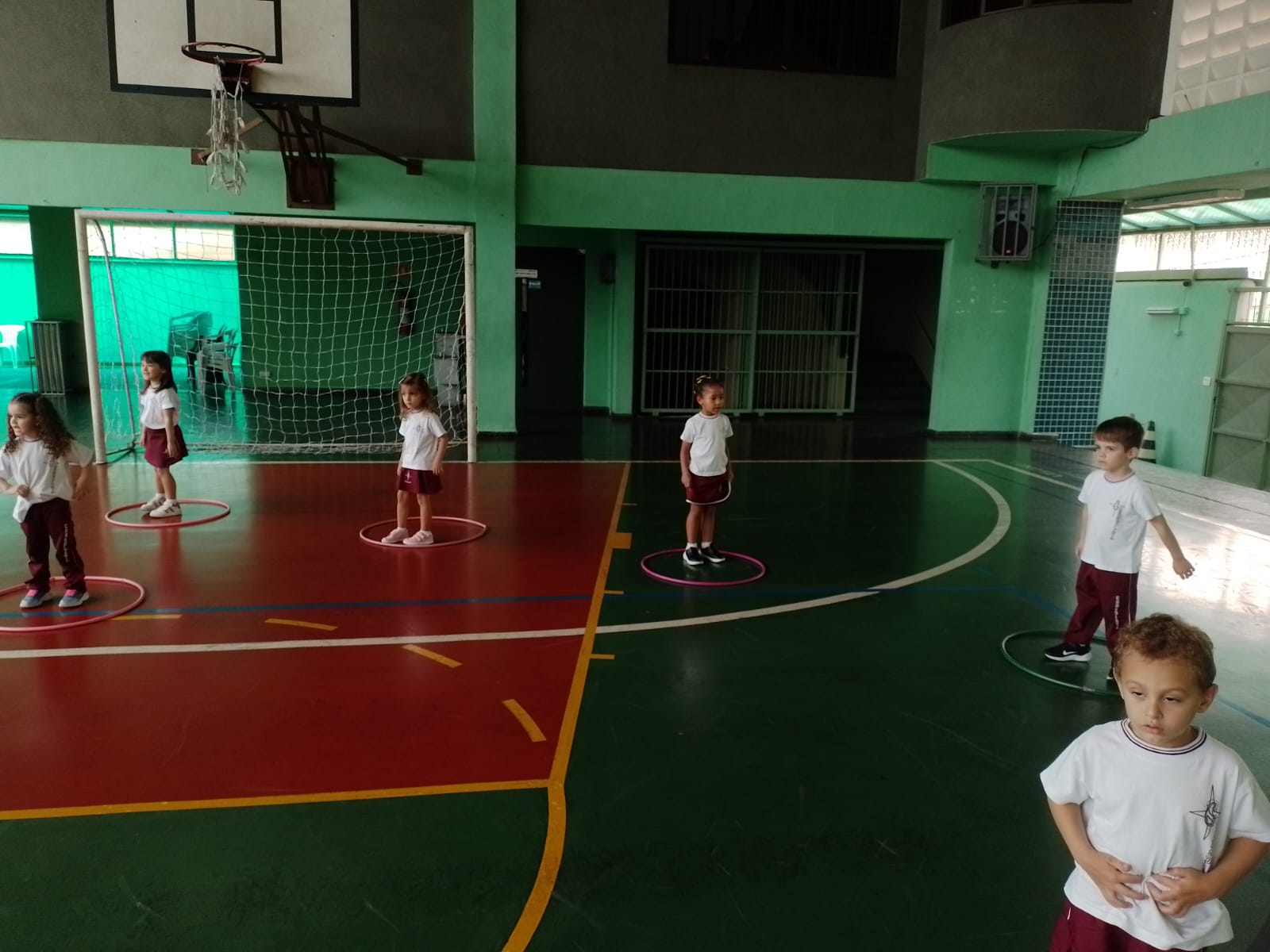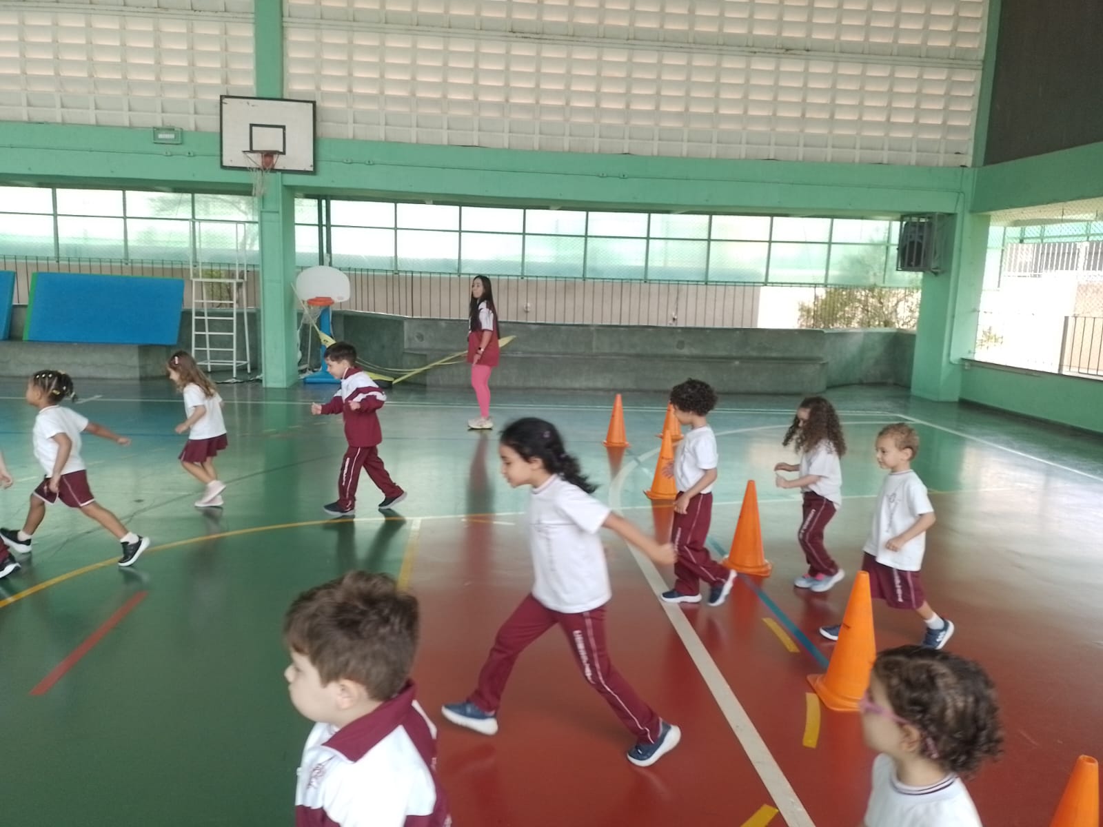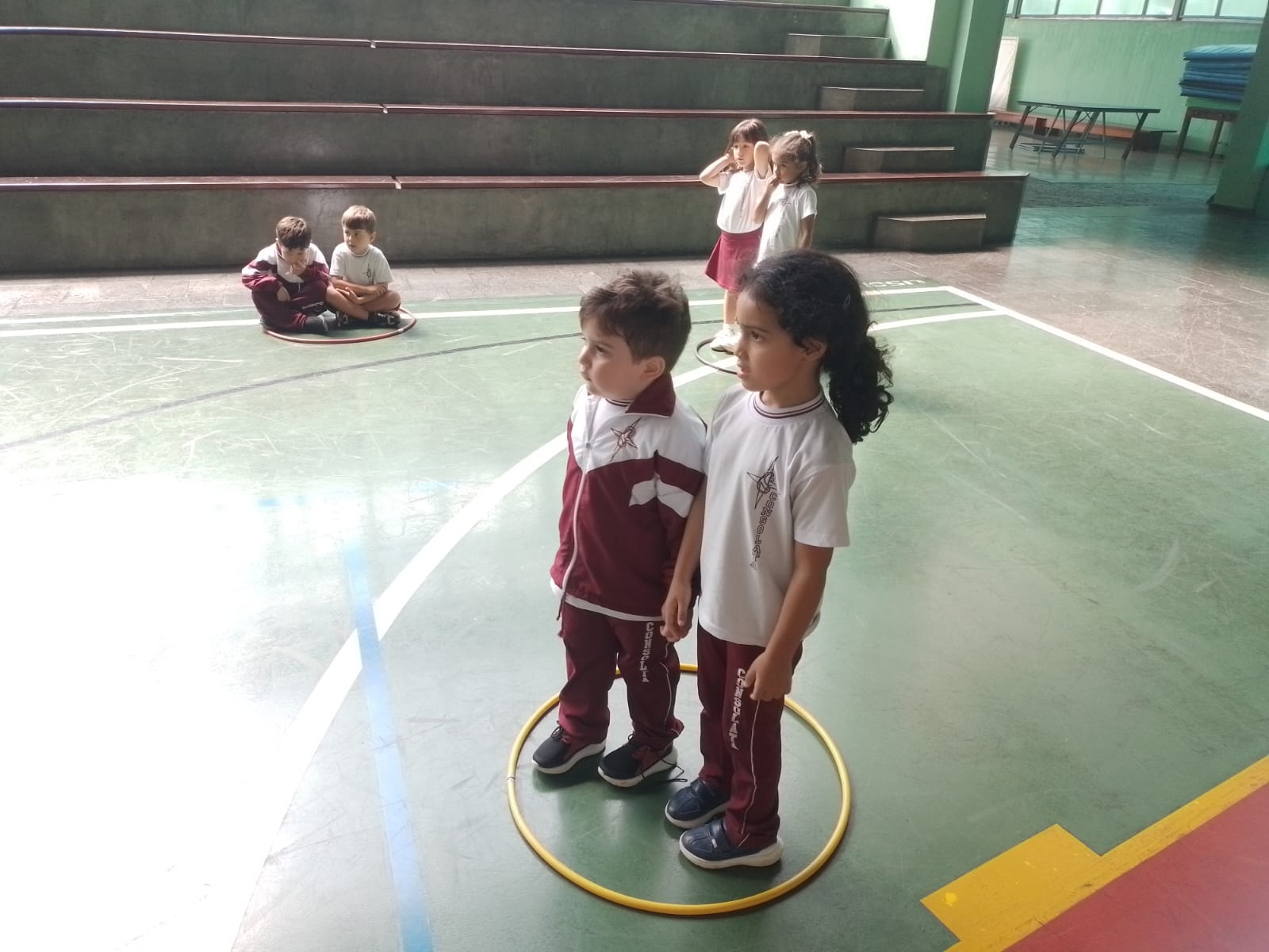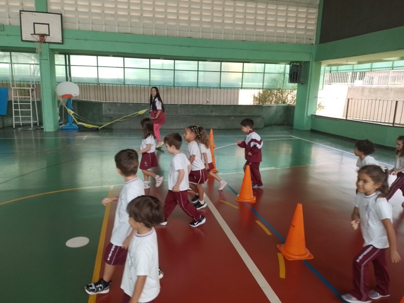 Na aula de Educação Física do Infantil 1 e 2 a professora Patrícia Cajeron realizou uma atividade lúdica, que tem como objetivo desenvolver noção espacial de forma divertida.