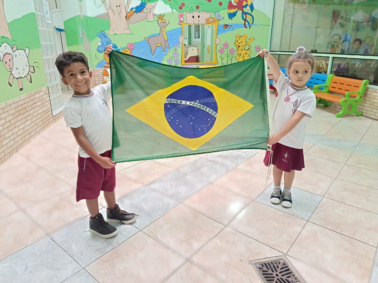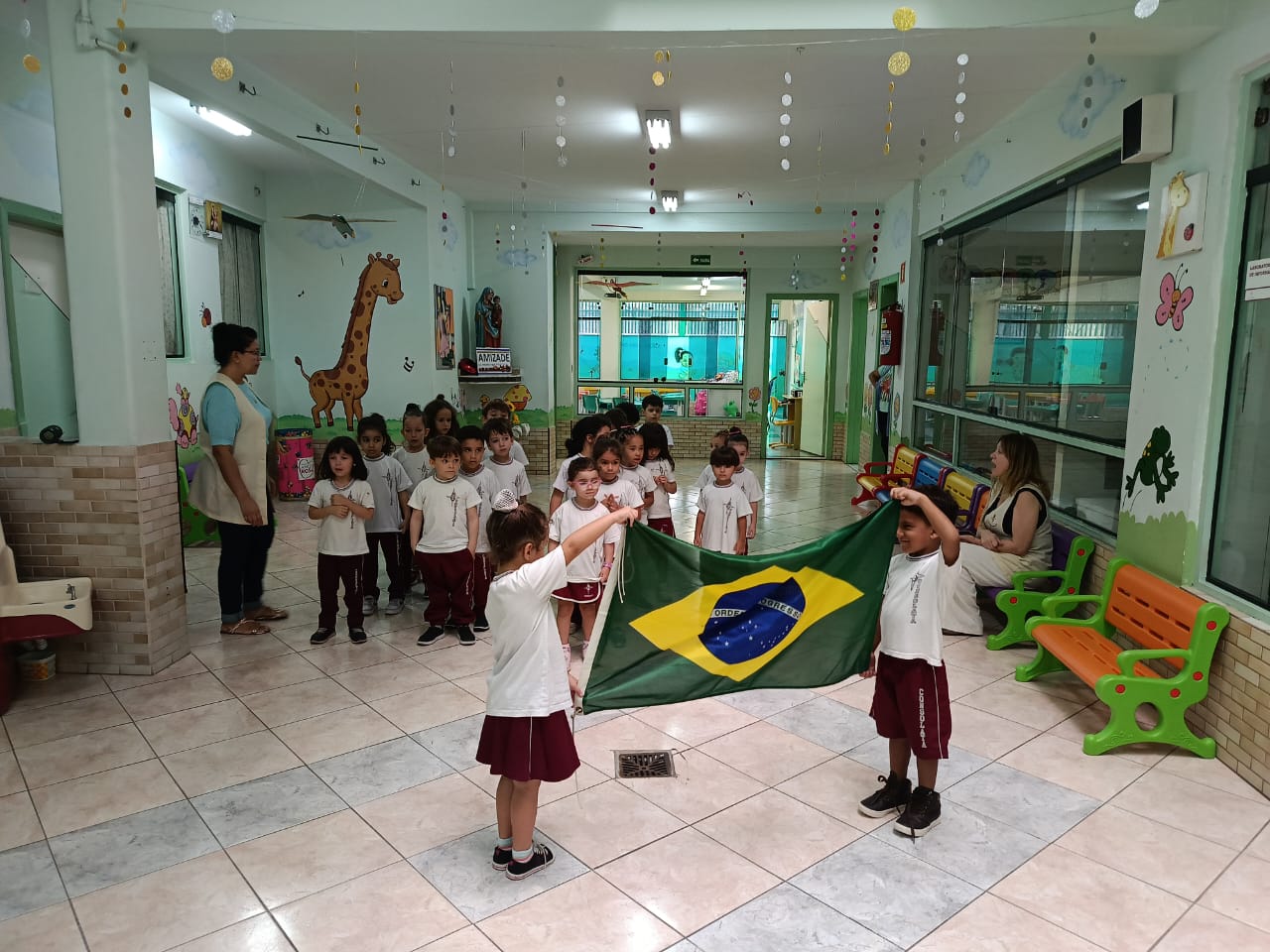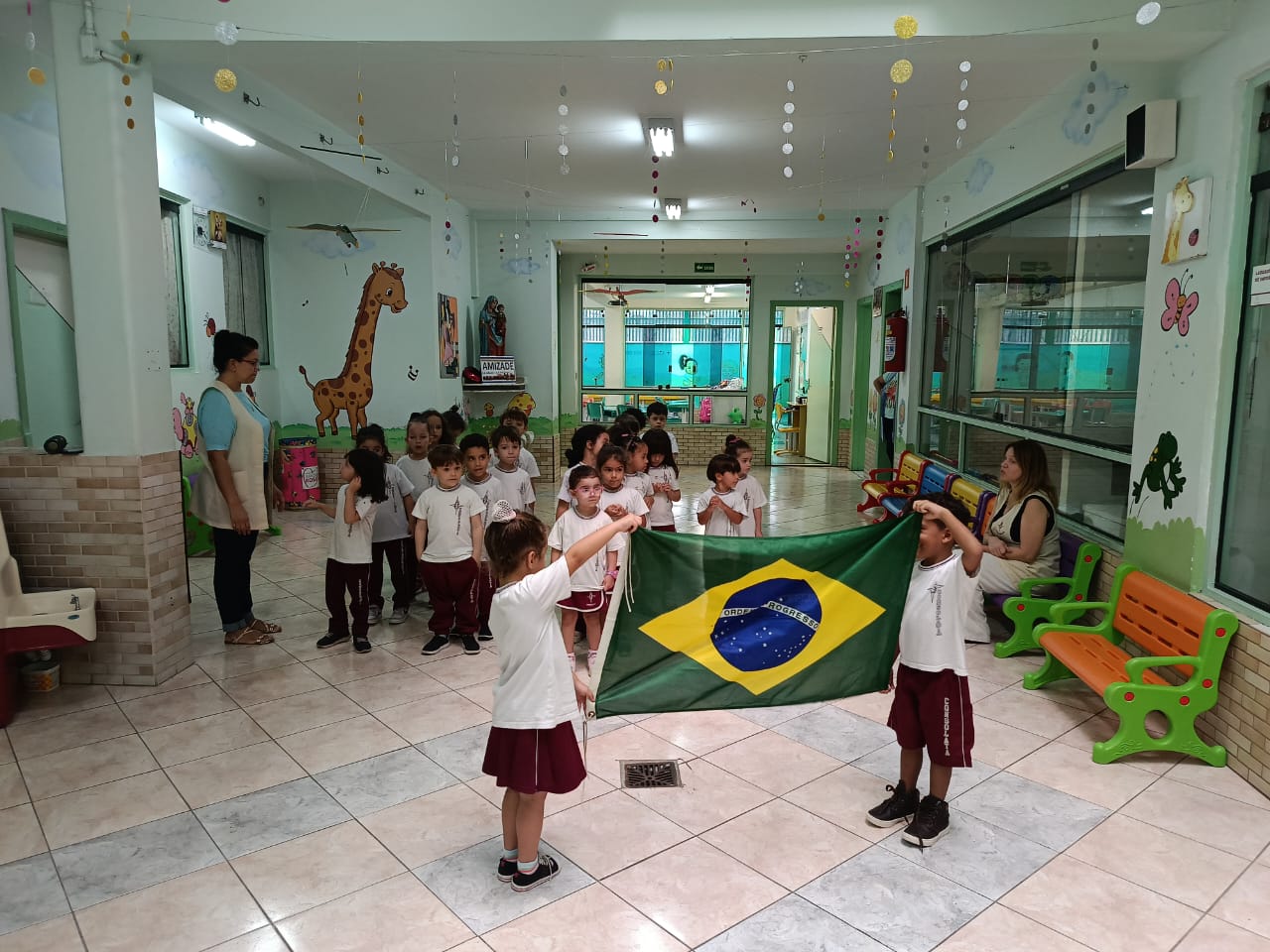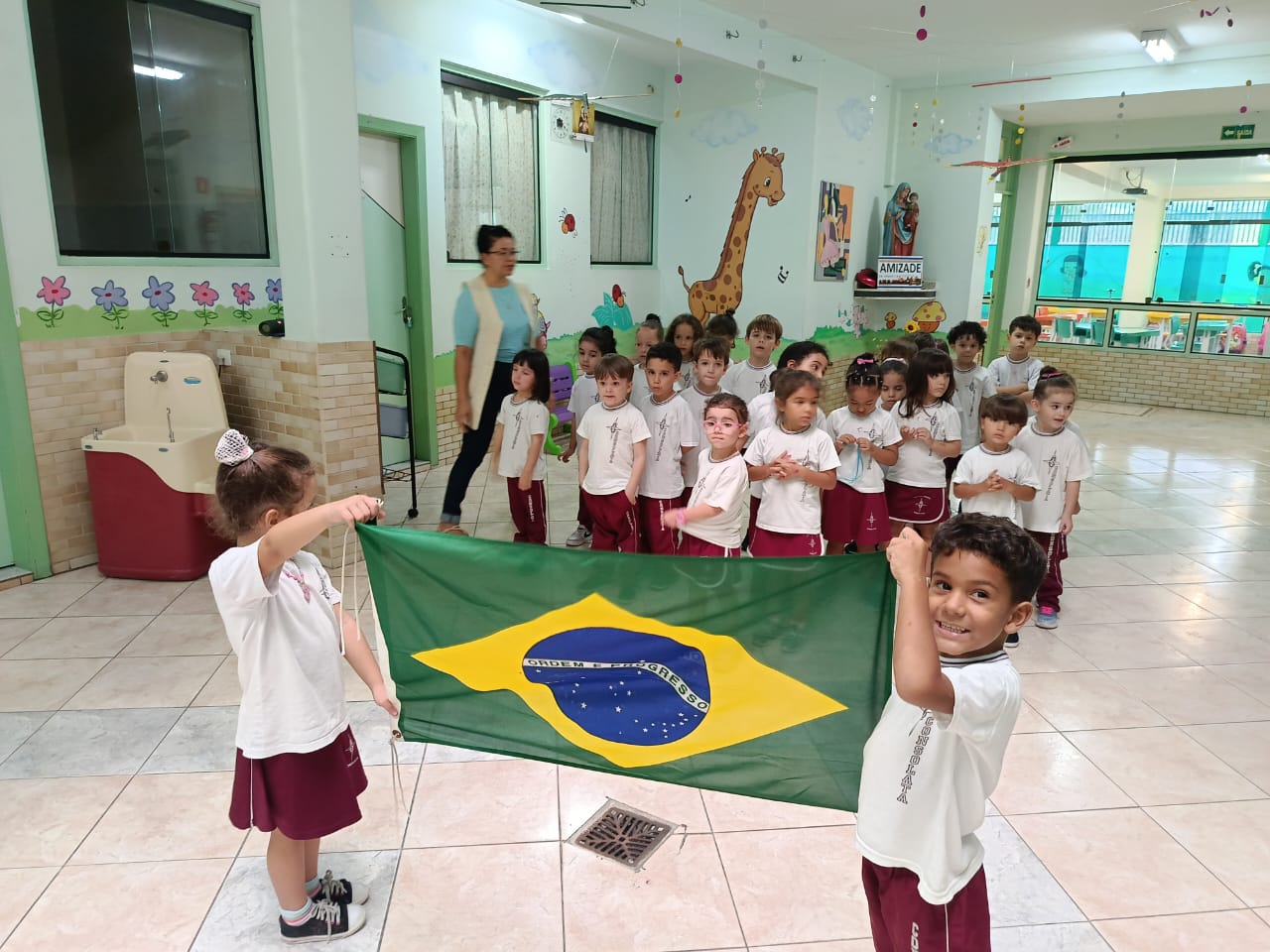 Nossos pequenos da Educação Infantil participaram de mais um Momento Cívico, um instante especial de aprendizado sobre respeito, cidadania e amor ao nosso país.