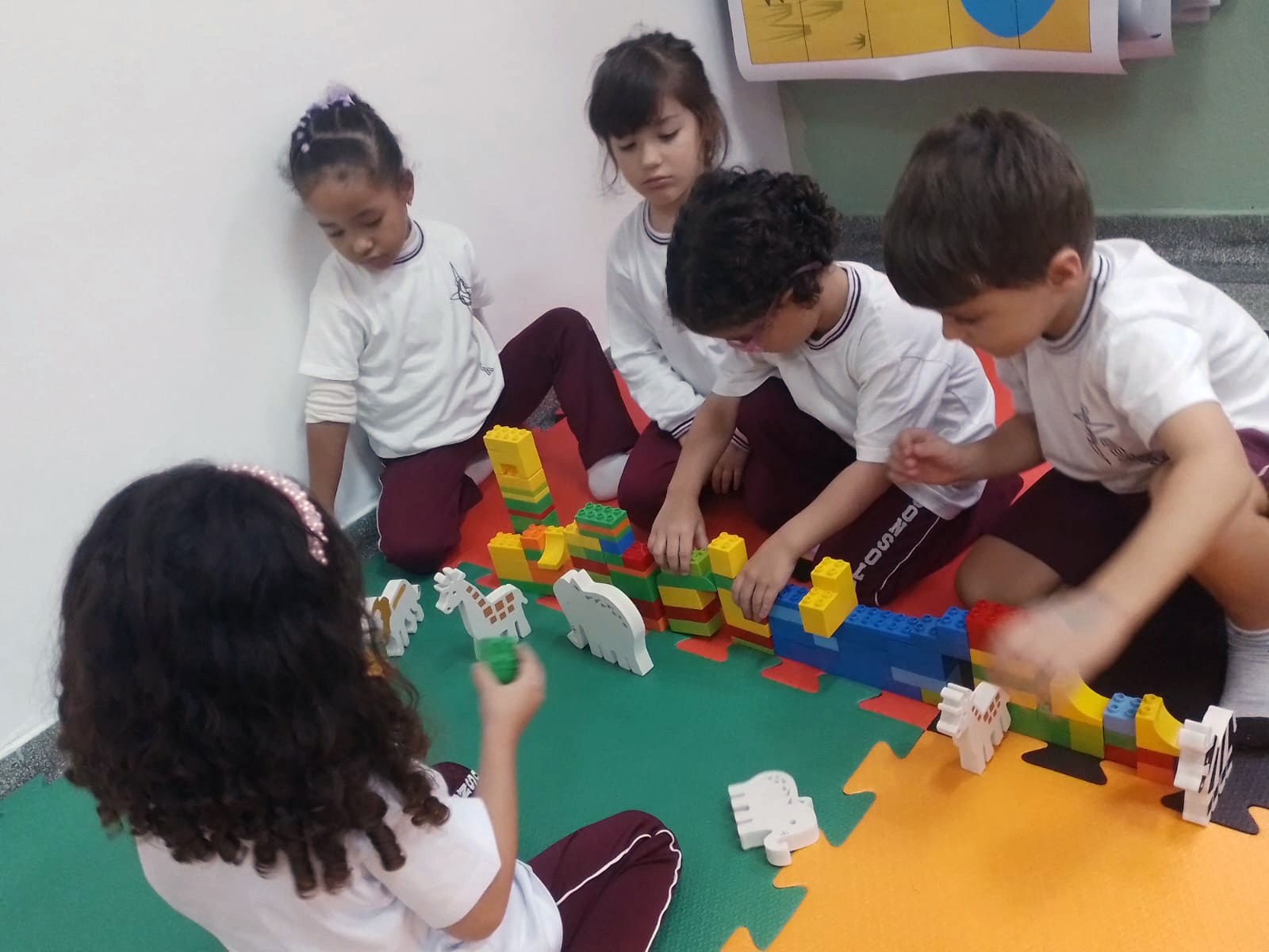 Ao final do estudo os alunos criaram o ambiente savana e brincaram com os animais.