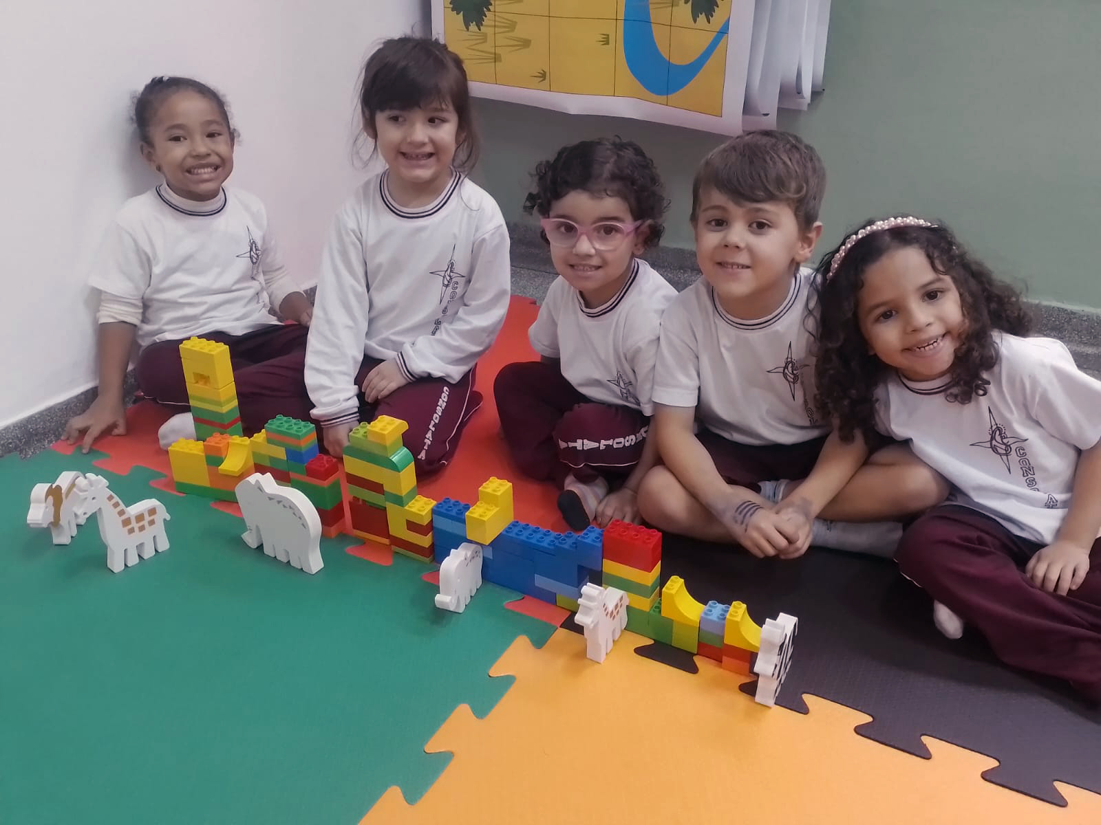 Durante as atividades, as crianças puderam conhecer características desses animais, como seus tamanhos, cores, sons e hábitos de vida.