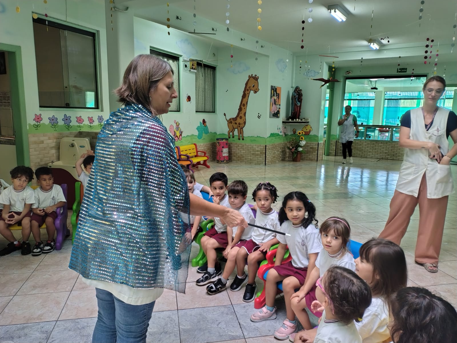 Neste contexto, os alunos tiveram a oportunidade de prestigiar mágicas realizadas pela professora o que tornou o momento ainda mais especial. As crianças ficaram encantadas com cada apresentação, participando com entusiasmo e demonstrando grande interesse.