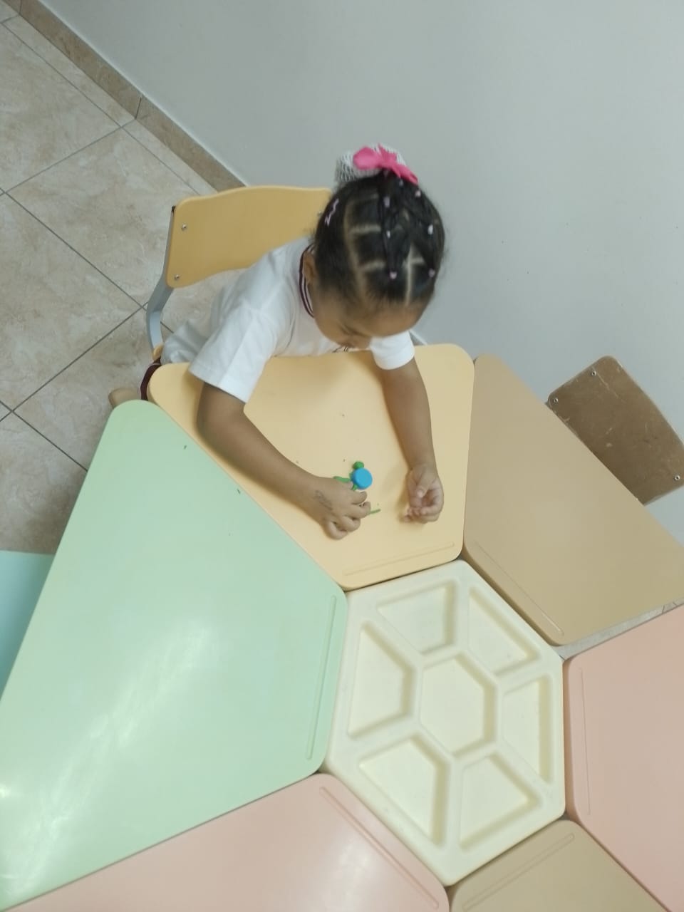 Durante a atividade, as crianças puderam explorar a criatividade ao modelar o corpo, as patas e a cabeça das tartarugas, observando suas características principais.