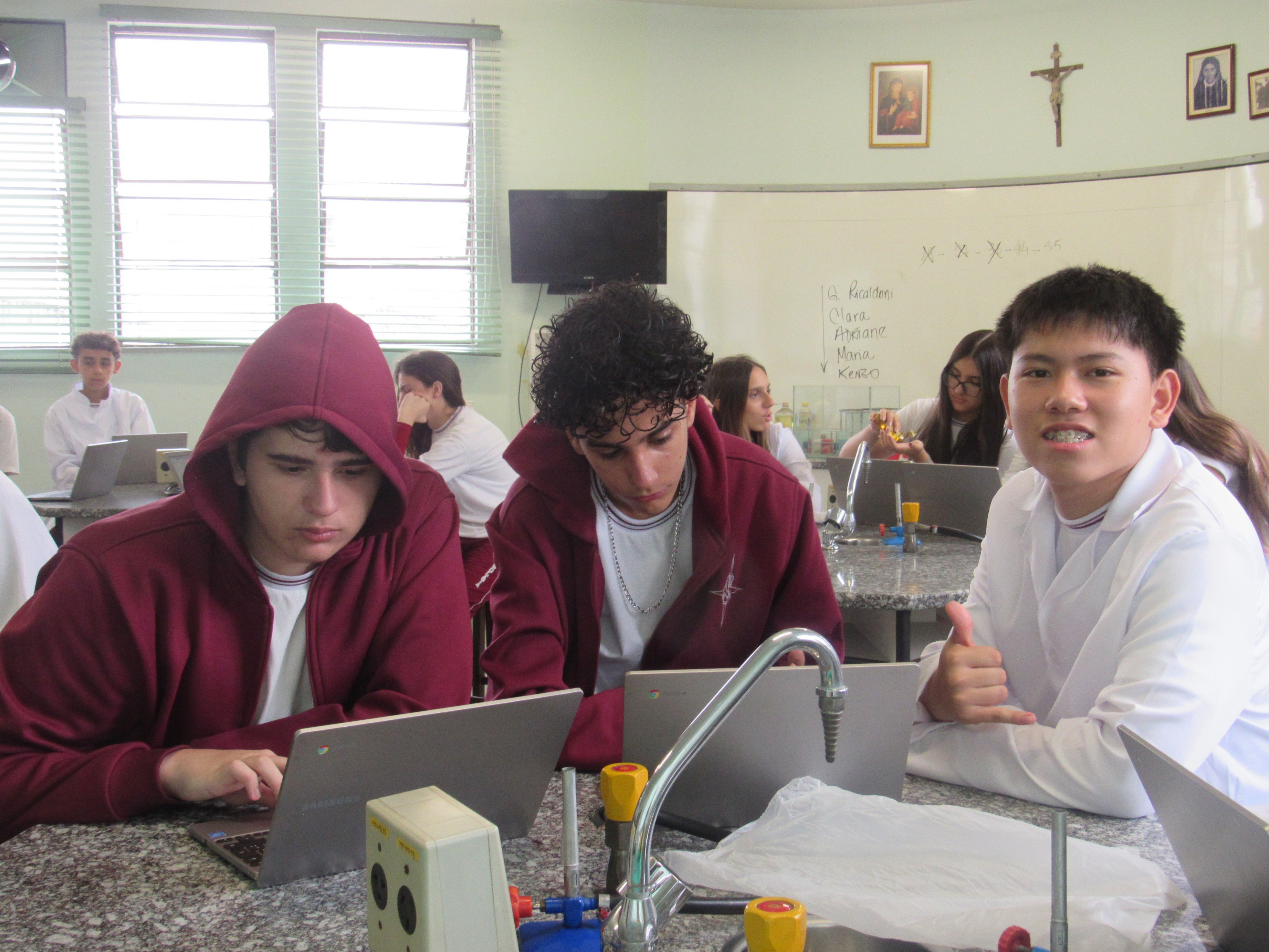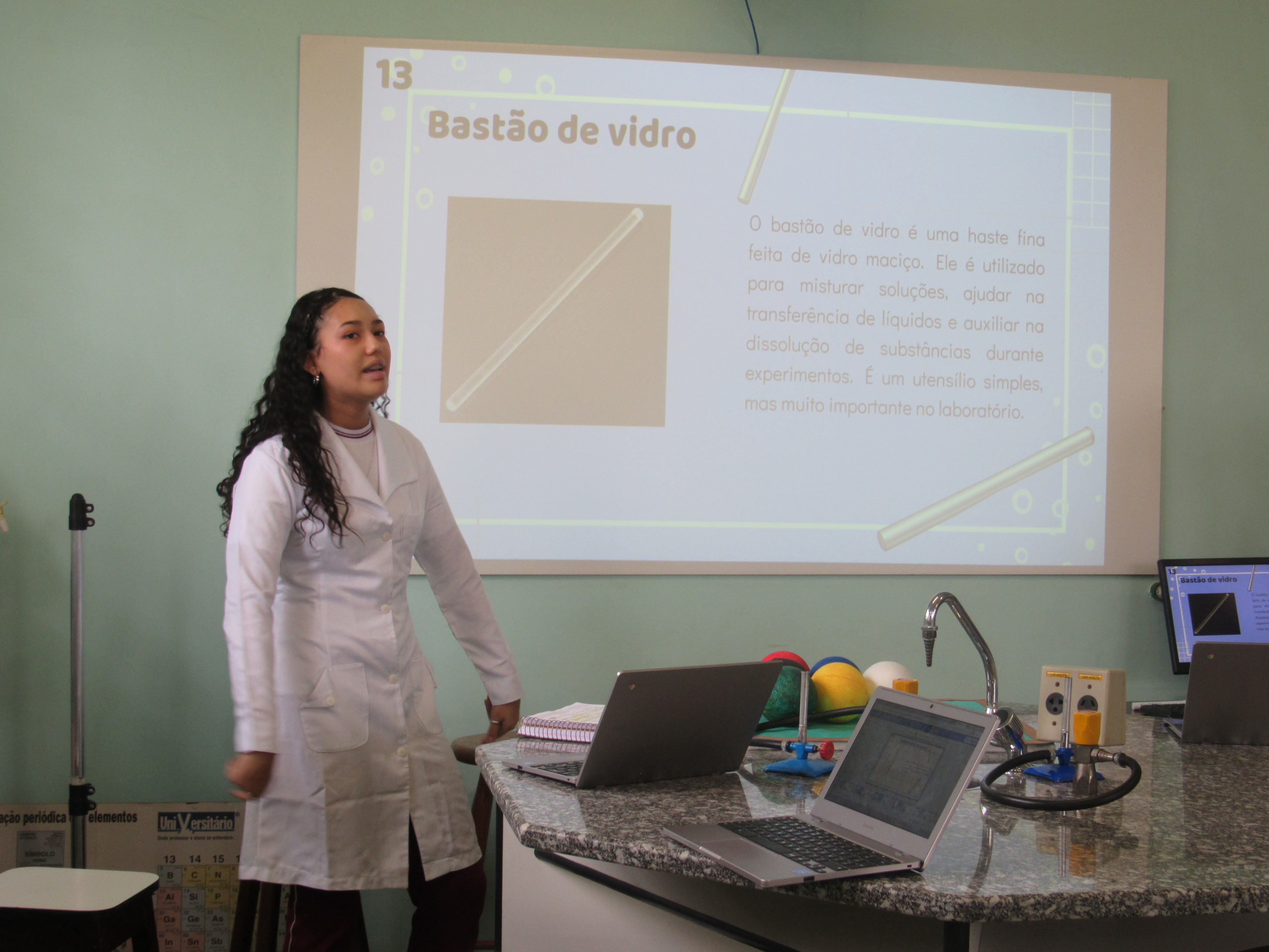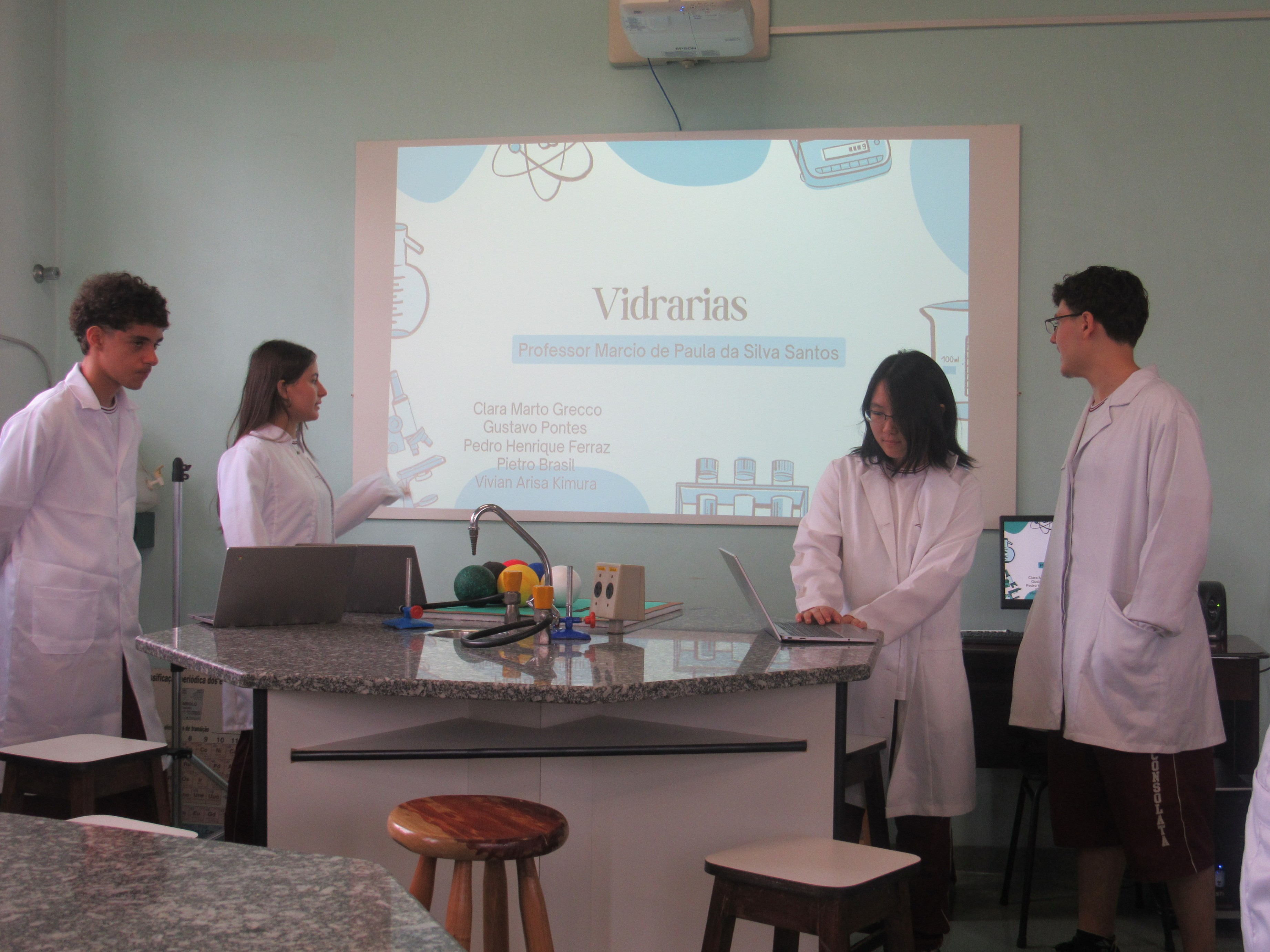 Os alunos das 1ªs séries do Ensino Médio participaram com excelência da apresentação do trabalho sobre as vidrarias do Laboratório de Multiciências, tendo como foco principal a segurança e a correta utilização desses materiais. A atividade contou ainda com o apoio da lousa digital do laboratório, enriquecendo a aprendizagem e tornando o momento mais dinâmico e interativo.