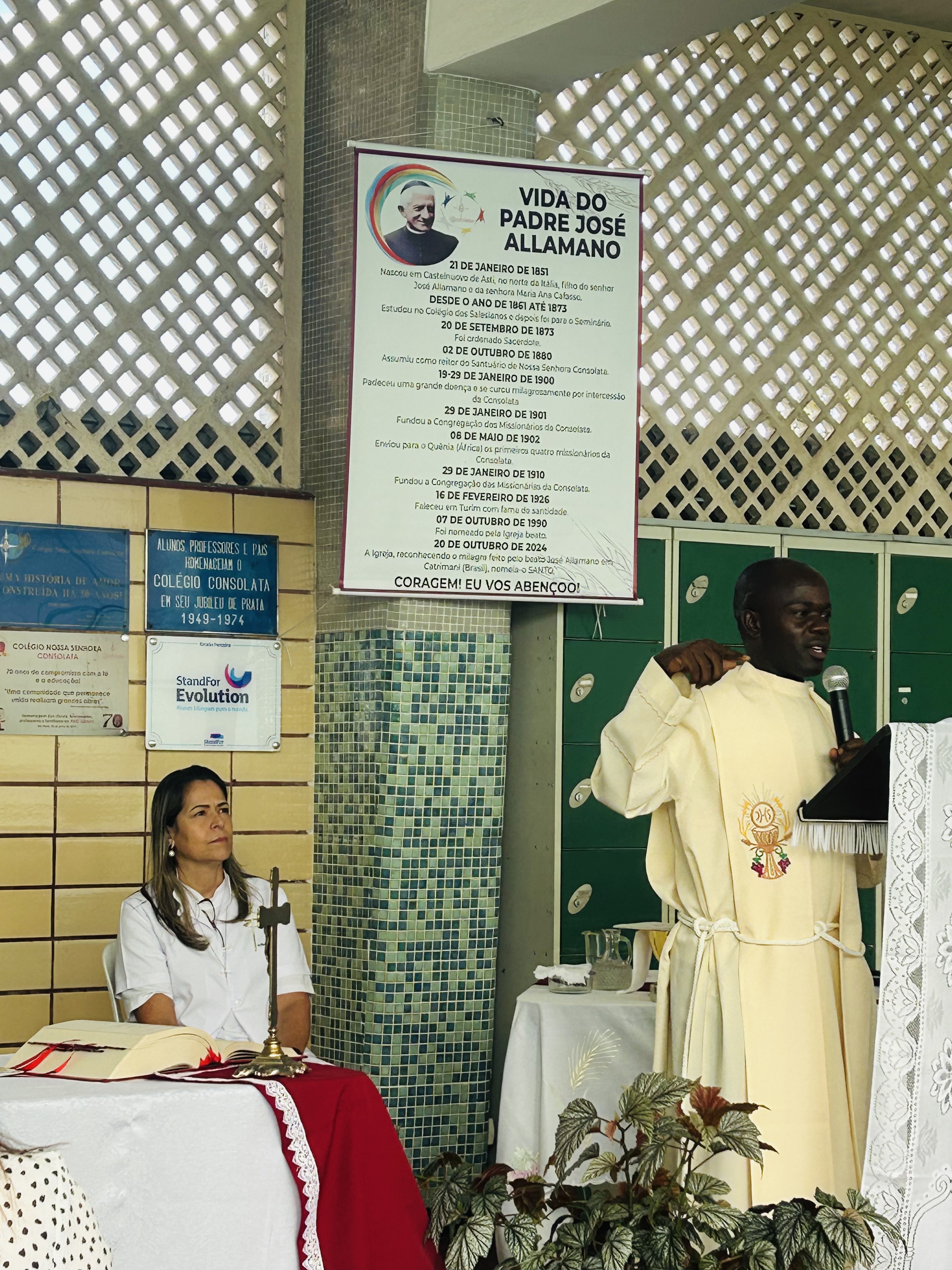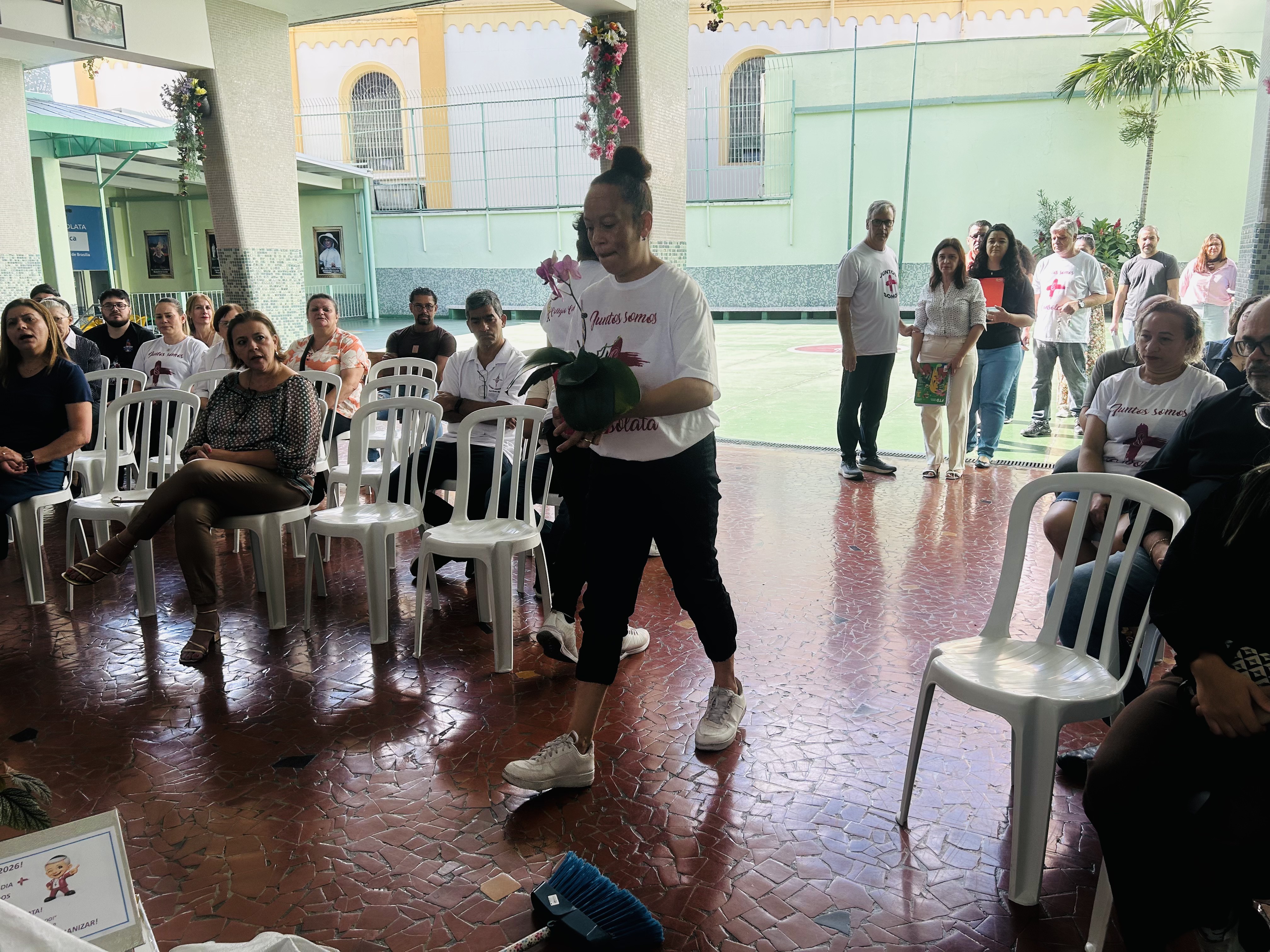Na celebração da comunidade educativa, presidida pelo Padre Fred Okumo, missionário da Consolata, vivemos juntos a partilha de dons e a entrega de nossas vidas ao Senhor — reconhecendo que tudo o que somos e realizamos encontra sentido em Cristo.