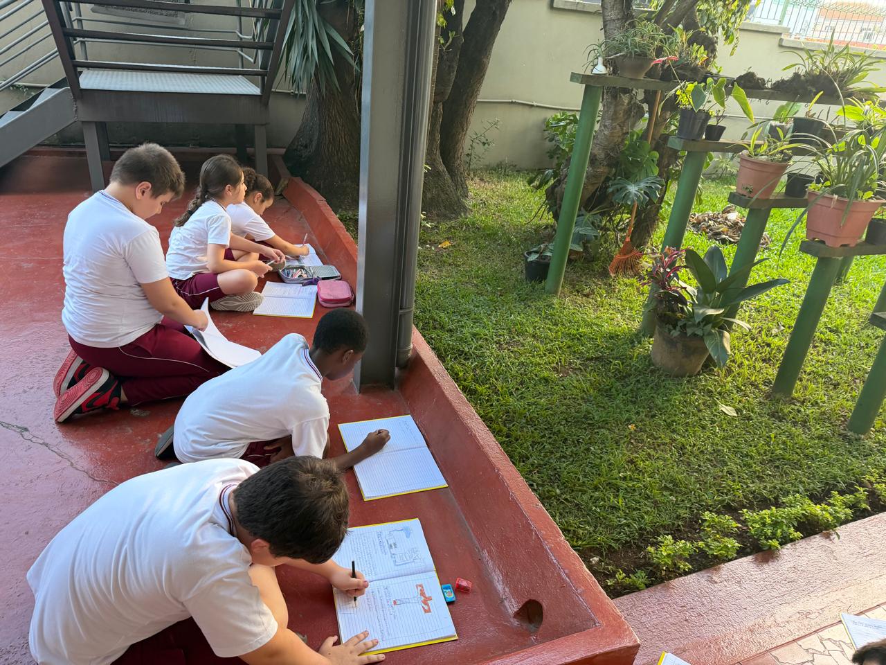 Os alunos do 4º ano A vivenciaram um momento especial ao explorar os jardins do Colégio Consolata, observando a diversidade de plantas e reconhecendo a beleza da natureza ao seu redor.