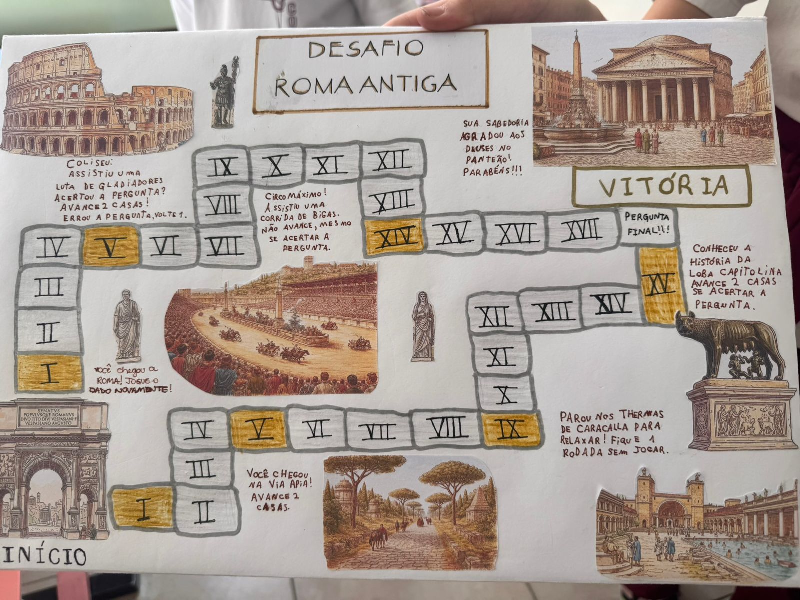 Os alunos do 6º ano idealizaram e desenvolveram um jogo histórico completo, criando regras, estrutura e design, a partir de grandes civilizações como Mesopotâmia, Egito Antigo, Grécia, Roma e a história dos hebreus.design, a partir de grandes civilizações como Mesopotâmia, Egito Antigo, Grécia, Roma e a história dos hebreus.