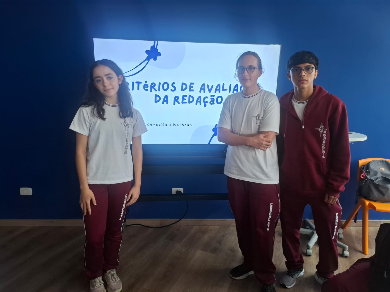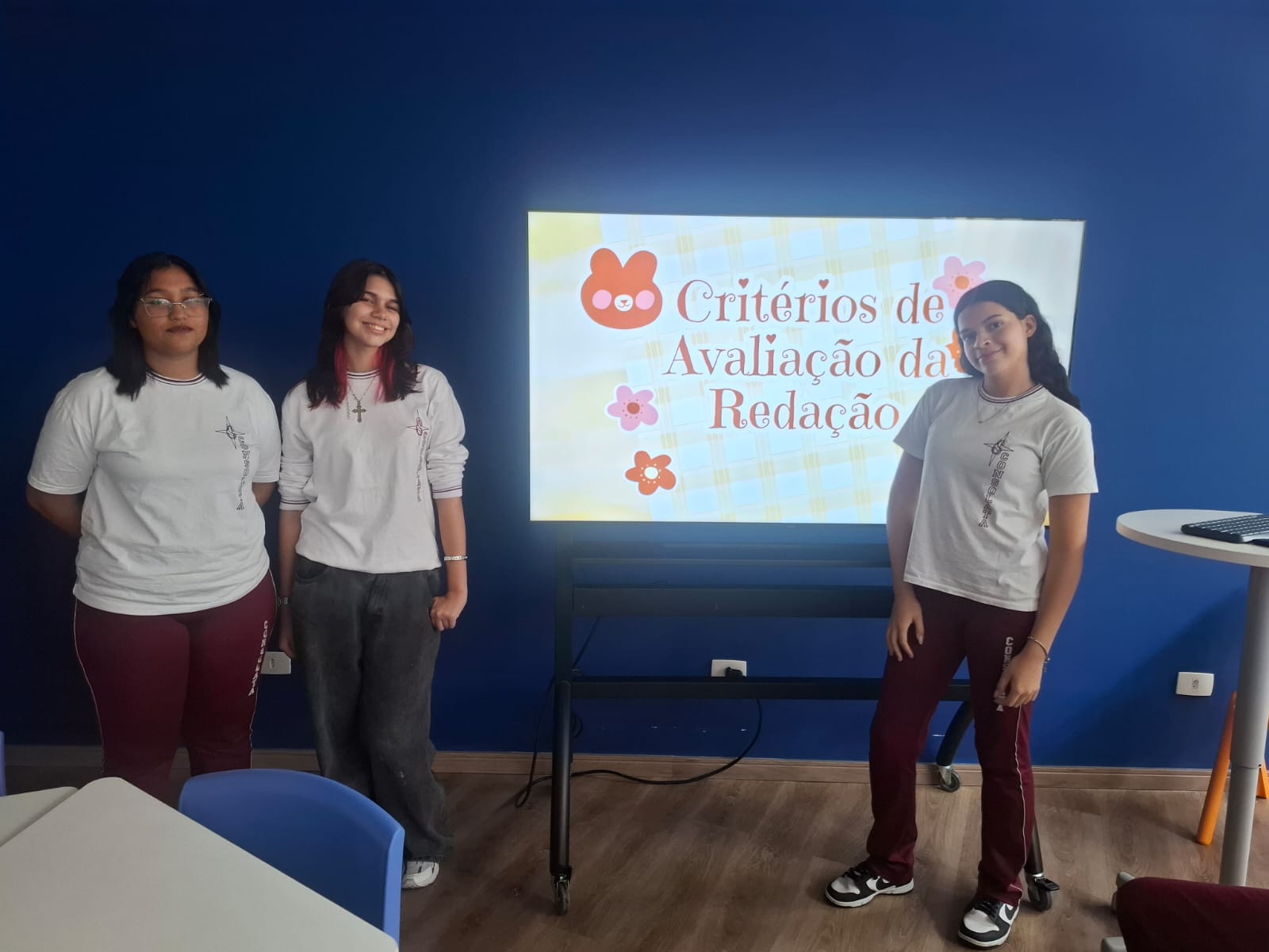 Os alunos da 2ª série A do Ensino Médio vivenciaram uma experiência diferente e muito significativa: eles apresentaram seminários sobre os critérios avaliativos da redação do ENEM e, na sequência, colocaram esse conhecimento em prática ao avaliar redações reais de candidatos de anos anteriores.