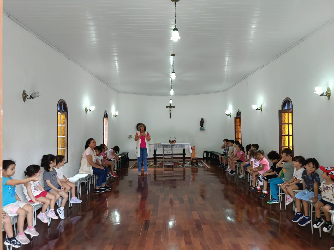 Na Educação Infantil, as crianças aprendem a relacionar-se com atitudes de acolhida, solidariedade e sensibilidade, por meio da vivência da espiritualidade, interação no ambiente com curiosidade, admiração e cuidado, investigação da realidade e da expressão criativa por meio de diferentes linguagens.